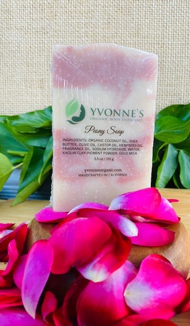Ingredients: Organic Shea Butter, Organic Coconut Oil, Organic Olive Oil, Castor Oil, Hemp Oil, Mica, Water, Sodium Hydroxide, and Fragrance (Peony).